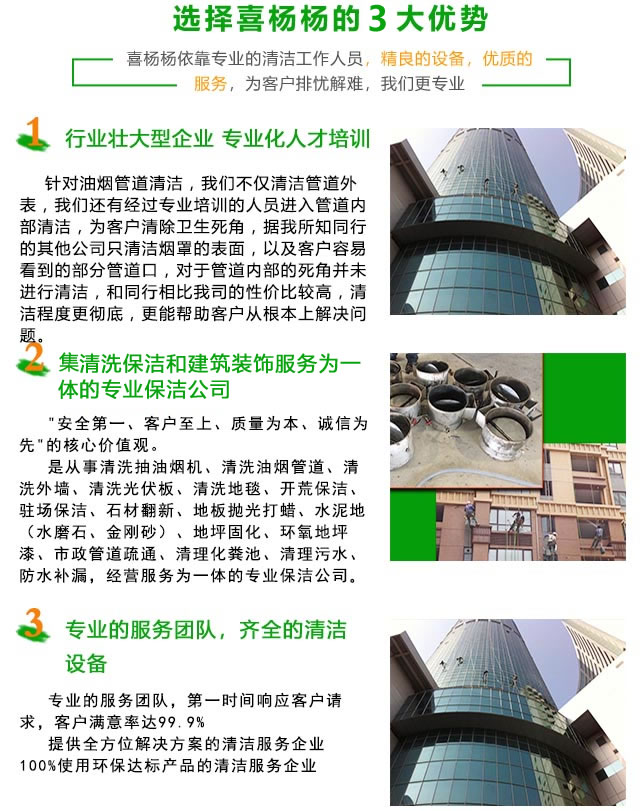 佛山市喜杨杨清洁服务有限公司,专业承接:建筑物清洁服务、其他清洁服务、建筑装饰业。我司成立于1998年,成立初期以保洁服务部的形式为佛山五区提供清洗保洁服务。随着规模的不断扩大,业务的不断完善,2010年11月,我司正式注册为有限责任公司,所营业务也从之前单一的清洗保洁服务,完善成为如今的清洗保洁和建筑装饰一条龙服务。